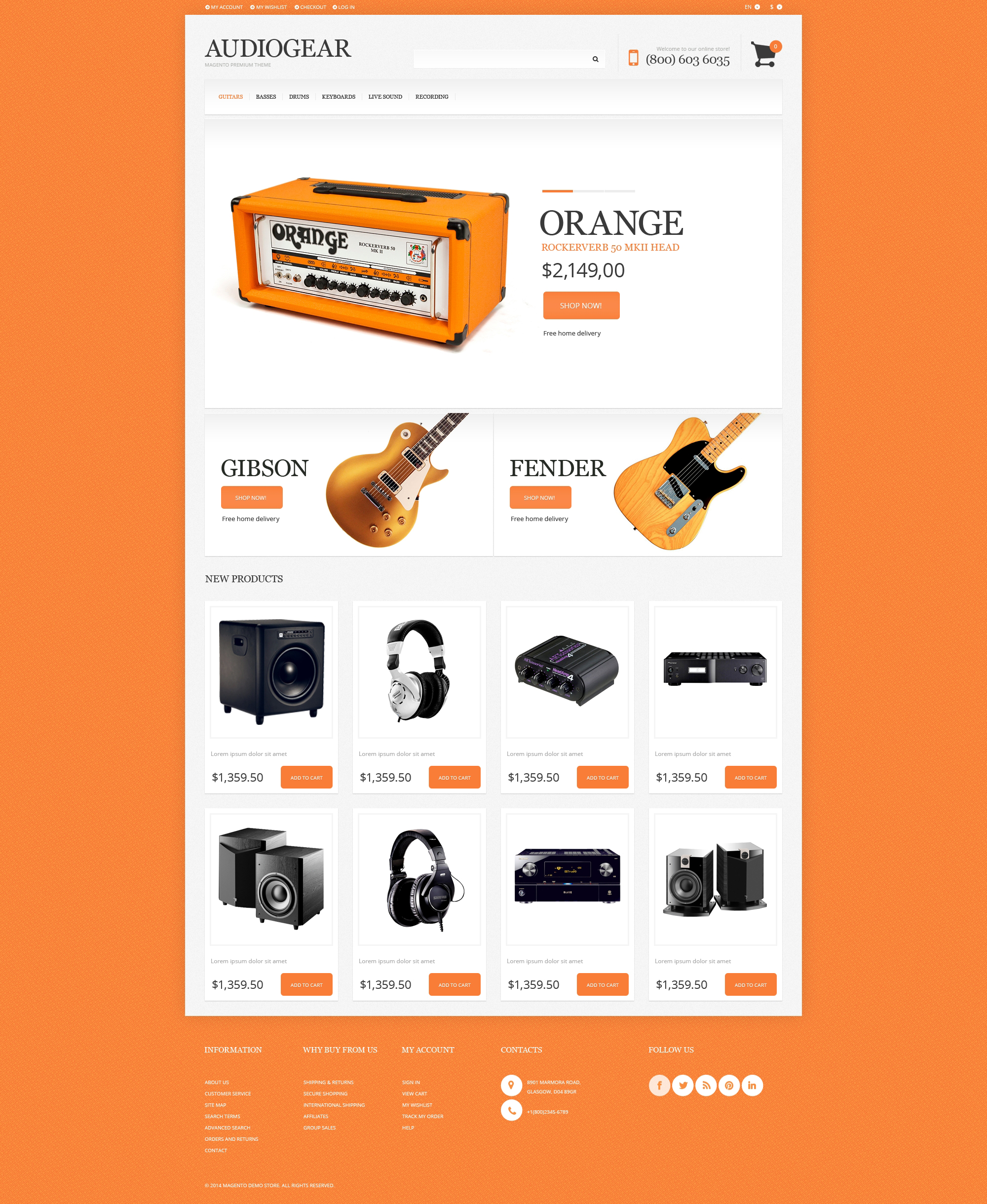 адаптивная тема magento для аудиомагазина