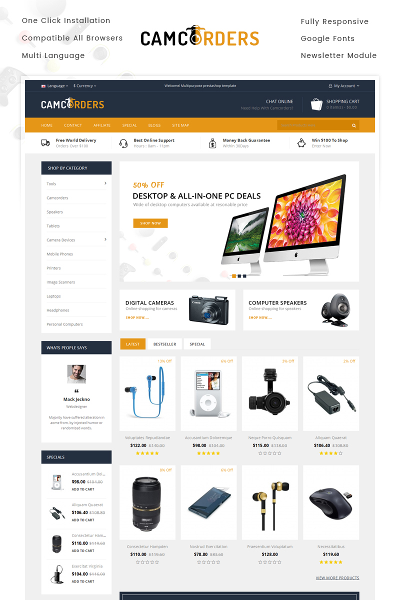 Шаблон магазина электроники opencart - Camcorder - OpenCart шаблон для интернет-магазина