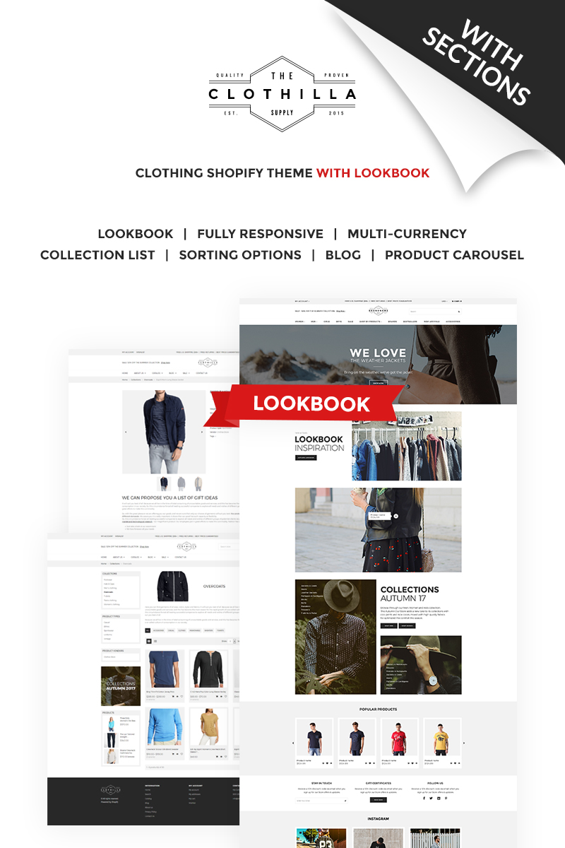 Shopify интернет-магазин - Clothilla - Clothing Store Shopify Theme, хорошо подходит для сайтов на тему Модный магазин.