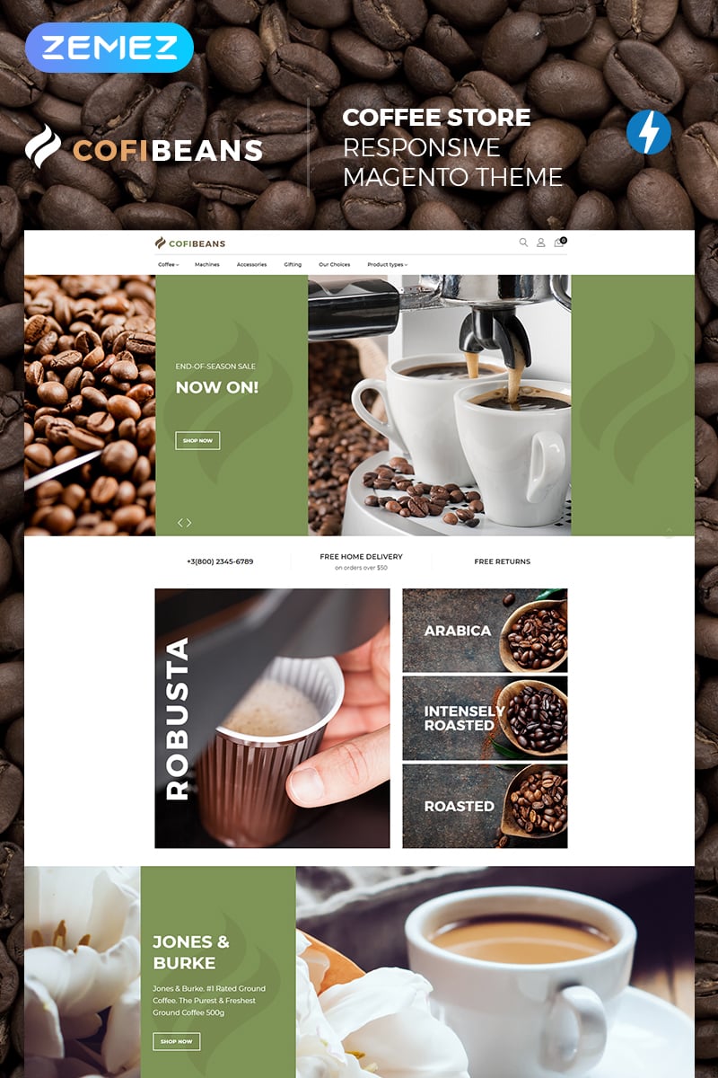 Magento минималистичный шаблон - CofiBeans - AMP Coffee Shop Magento Theme, отлично подходит для сайтов в категории Кофейня.