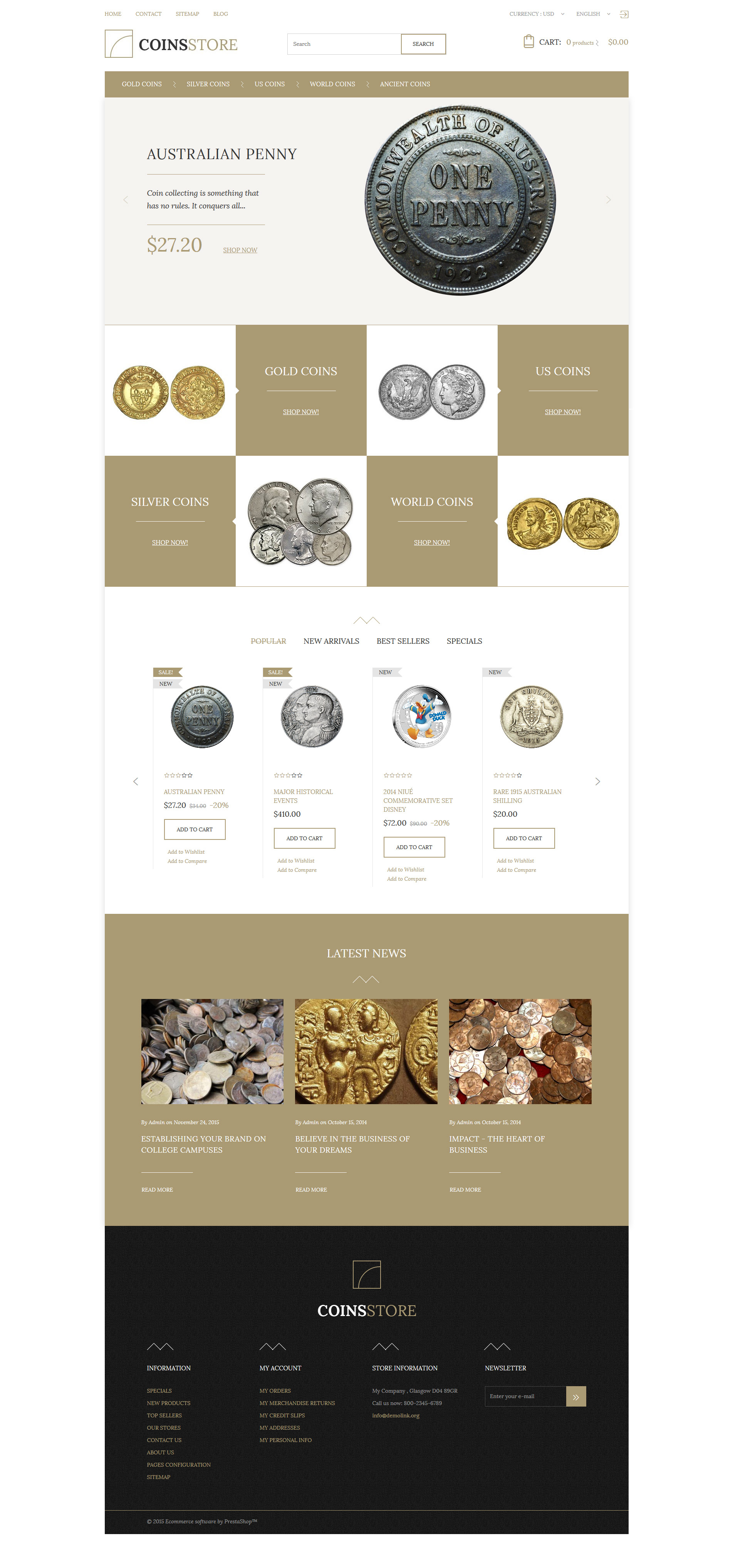 Antique Store - специально для сайтов в сфере Магазин антиквариата. PrestaShop шаблон интернет-магазина - Coin Store PrestaShop Theme.