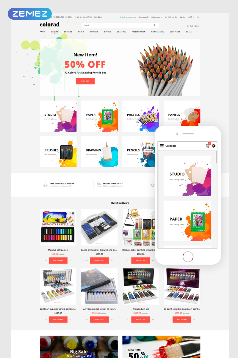 OpenCart шаблон интернет-магазина - Colorad - Art Store Clean OpenCart Template, специально для сайтов на тему Арт-магазин.
