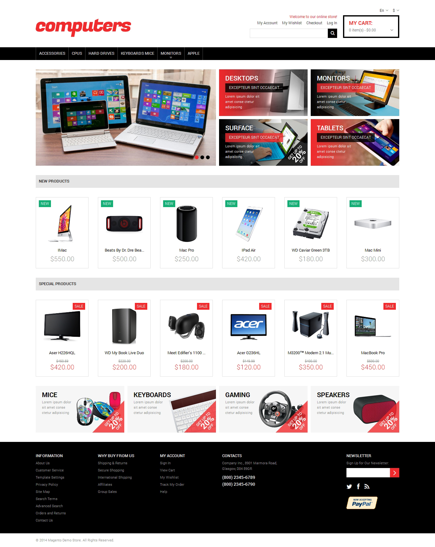 Magento мультишаблон - Computer Store - Computer Store Responsive Magento Theme, отлично подходит для сайтов Компьютерный магазин.
