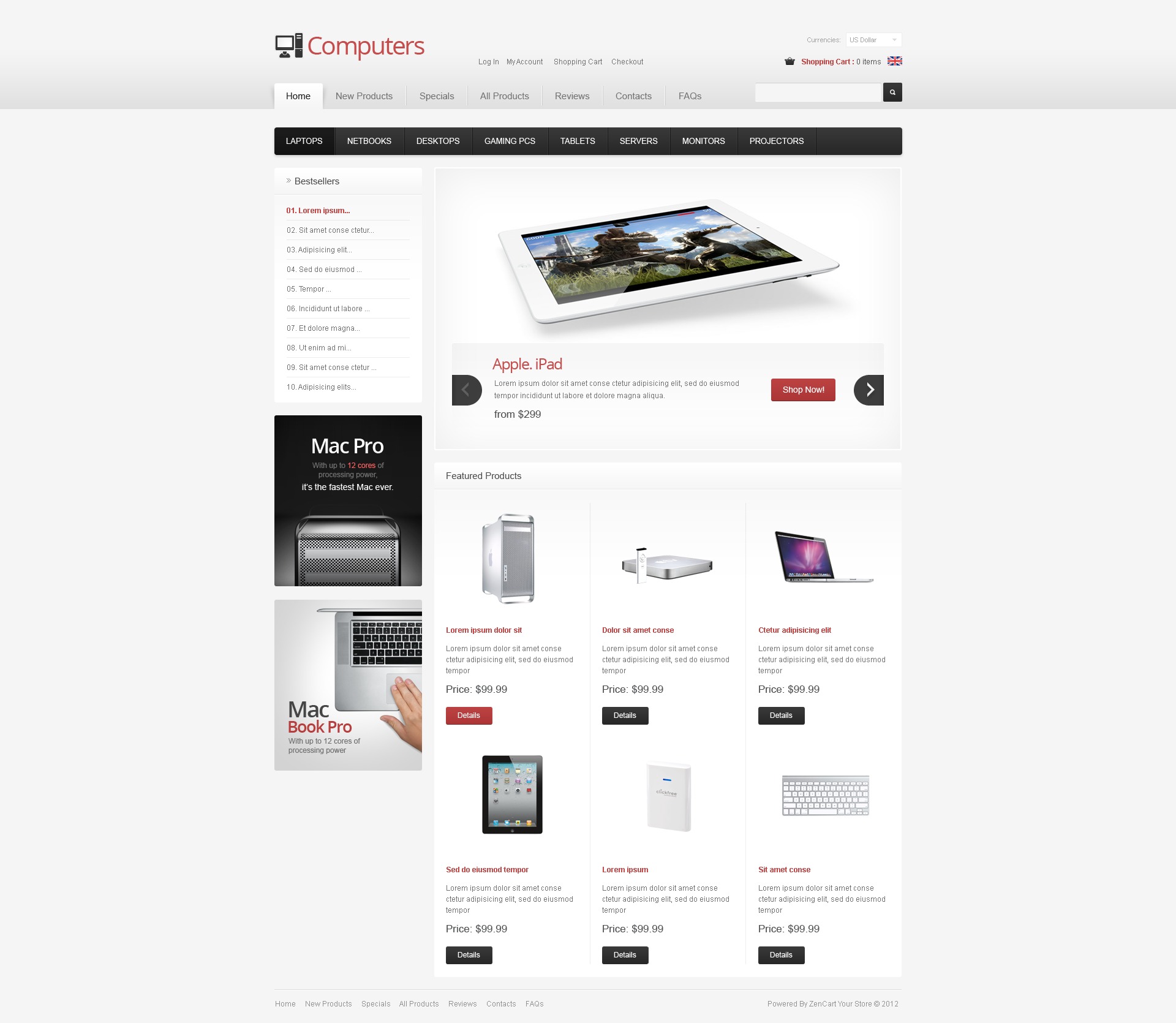 Computer Store - хорошо подойдет для сайтов на тему Компьютерный магазин. ZenCart шаблон для сайта интернет-магазина - Computer Technics ZenCart Template.