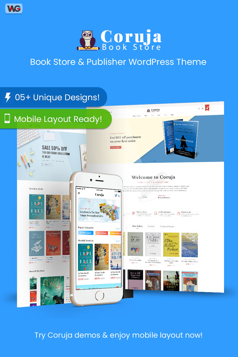 WooCommerce онлайн-магазин Wordpress - Coruja - Book Store & Publisher WooCommerce WordPress Theme, превосходно подойдет для сайтов Издательская компания.