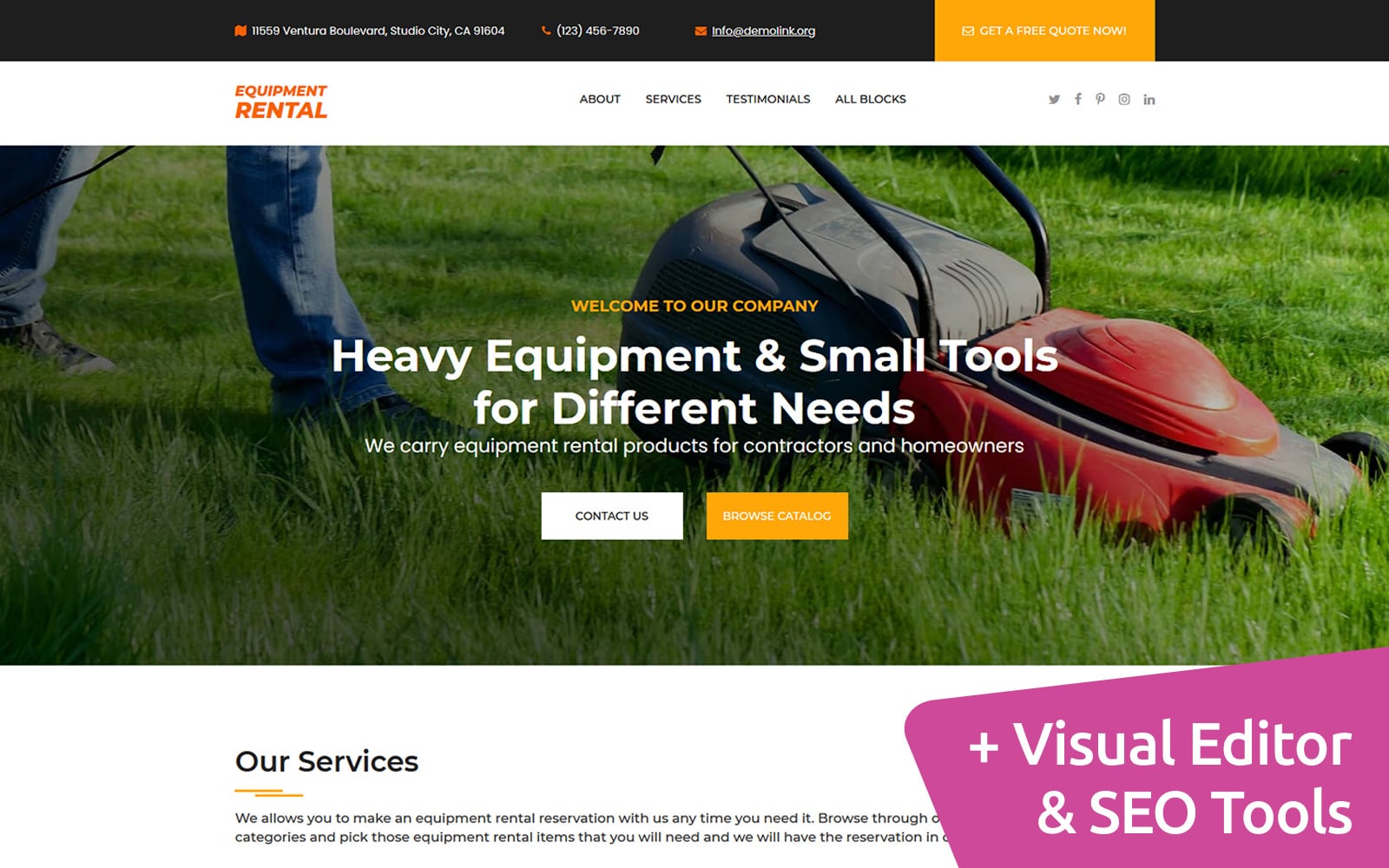 Лендинг шаблон для одностраничного сайта - Tools & Equipment - Equipment Rental MotoCMS Landing Page Template, отлично подходит для сайтов в категории Инструменты и оборудование.
