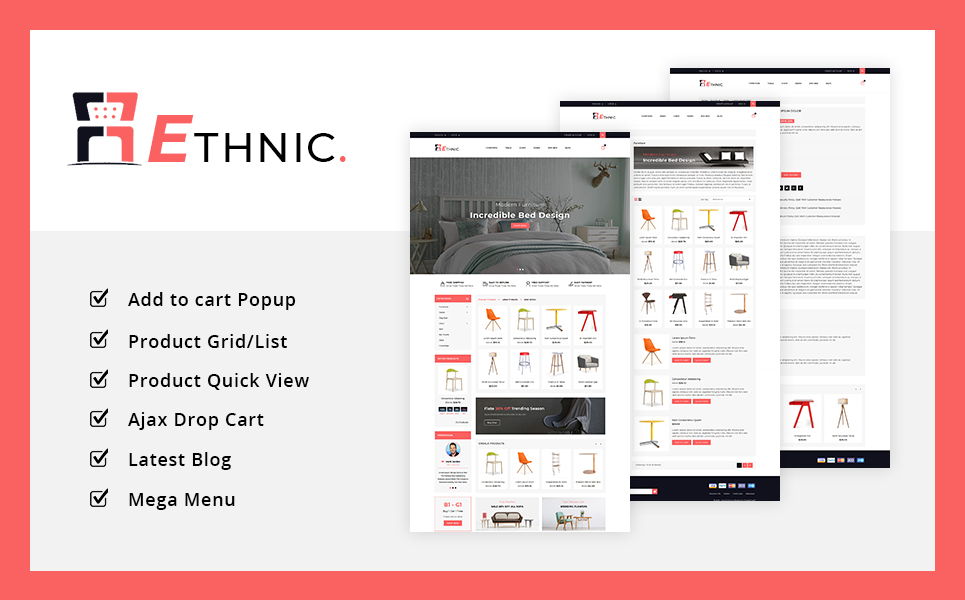 Interior & Furniture - отлично подойдет для сайтов в области Дизайн и интерьер. PrestaShop интернет-магазин для сайта - Ethnic Home and Furniture Store PrestaShop Theme.