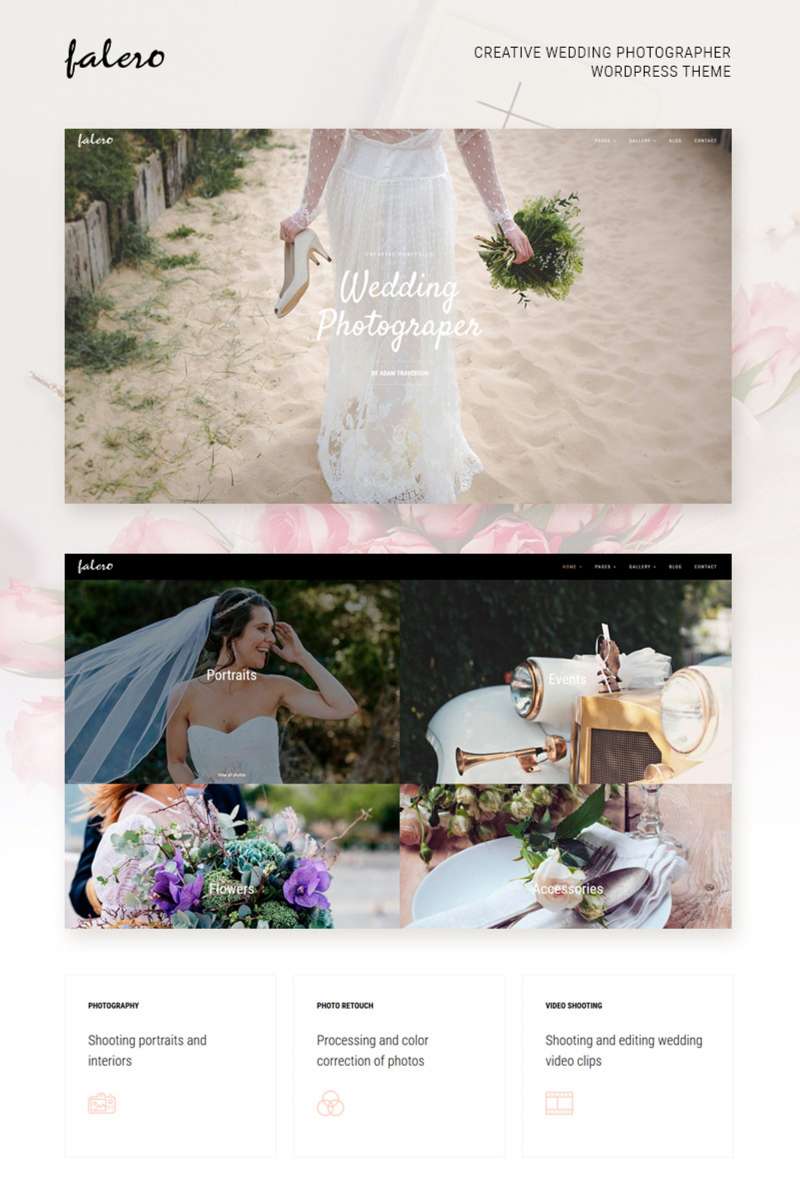 Photography - хорошо подойдет для сайтов Фотограф. WordPress мультишаблон для сайта - Falero Wedding Photographer WordPress Theme.