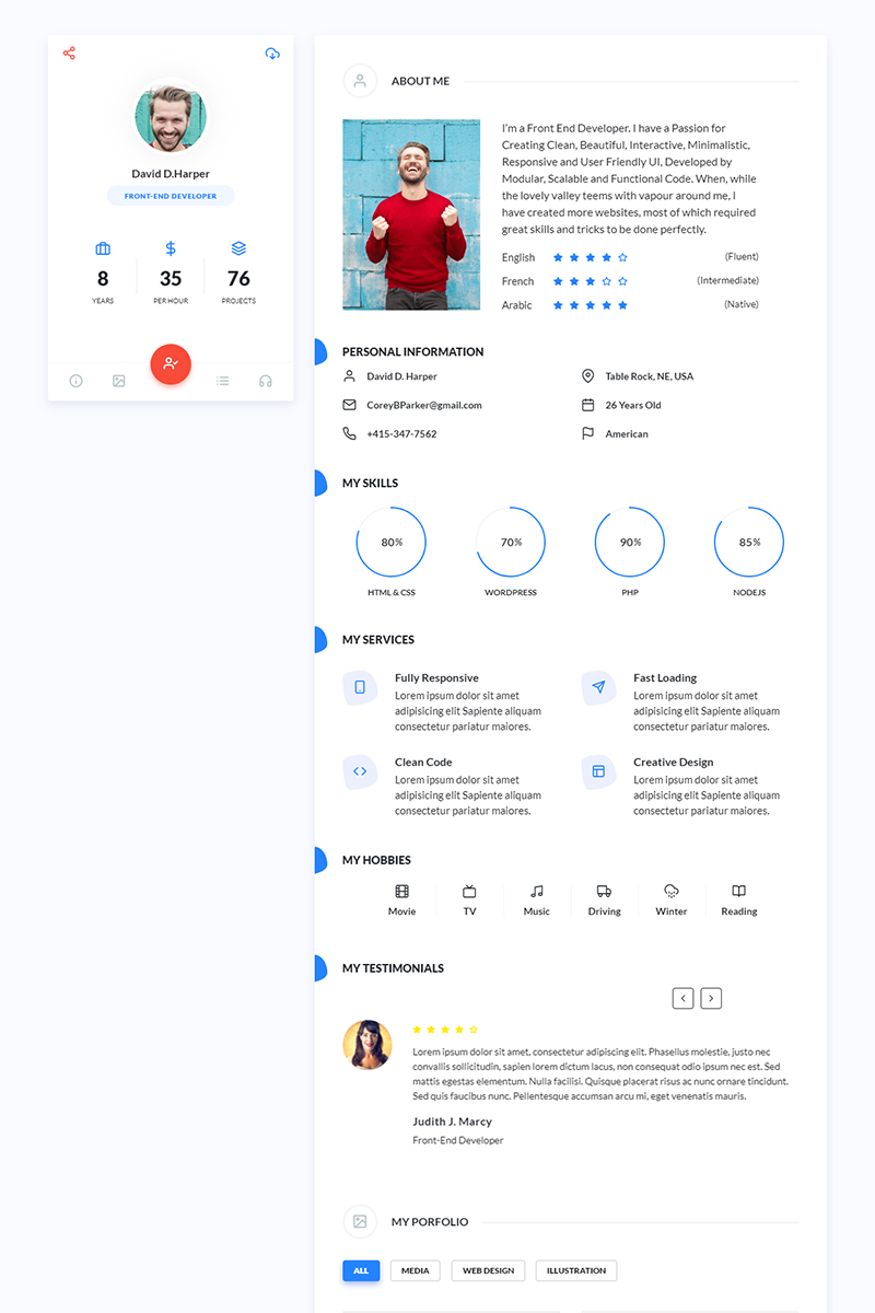 Resume Landing Page Template - FantasyVcard - Лендинг шаблон посадочной страницы