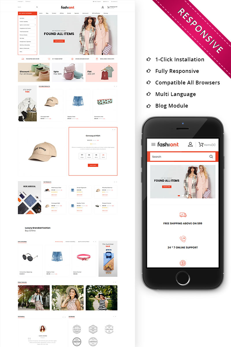 Шаблон opencart отзывчивого модного магазина - Fashiont - OpenCart шаблон интернет-магазина