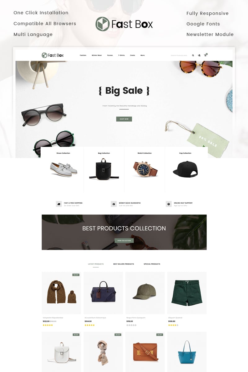 Fast Box - превосходно подойдет для сайтов в категории Магазин одежды. OpenCart интернет-магазин для сайта - Accessories Store OpenCart Template.