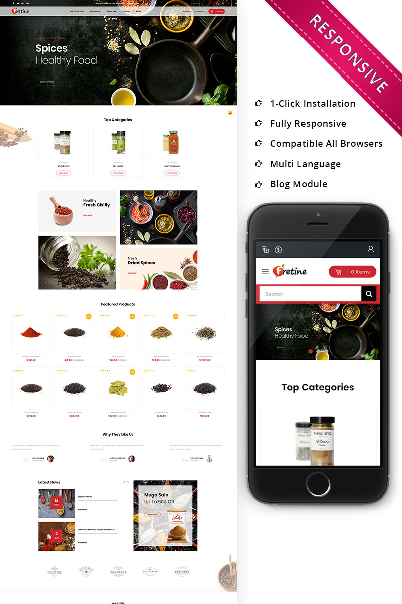 Адаптивный шаблон opencart - Fretine Spice Store - OpenCart шаблон интернет-магазина