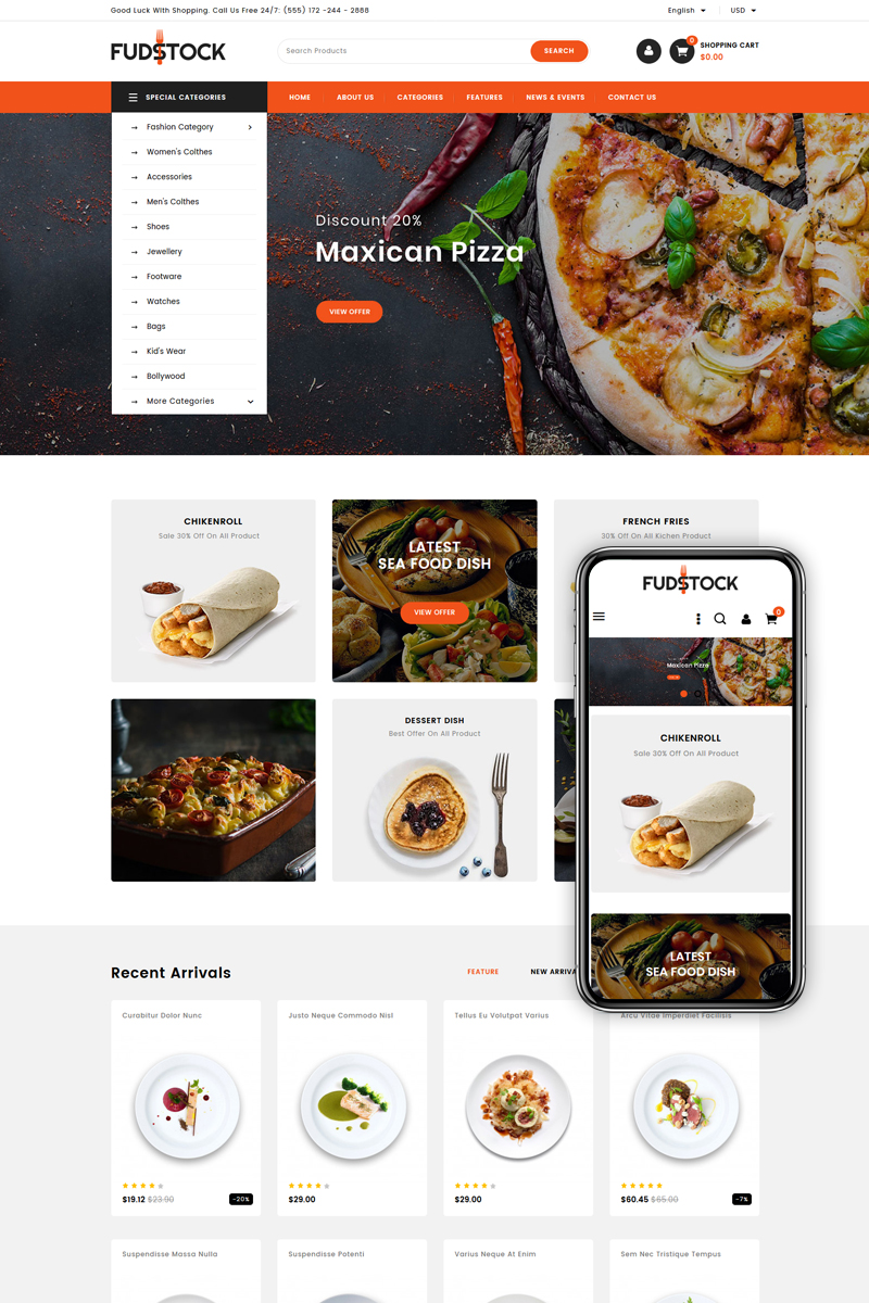 PrestaShop шаблон для интернет-магазина - Fudstock - Restaurant Store PrestaShop Theme, подходит для сайтов Животные.