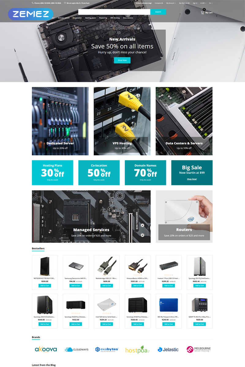OpenCart интернет-магазин - Hostia - Commerce Clean OpenCart Template, подойдет для сайтов в категории Хостинг.