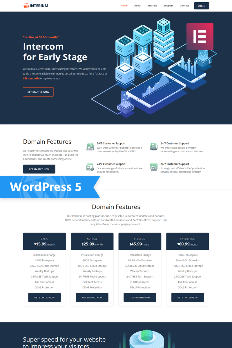 Interium - идеально подходит для сайтов в категории Хостинг. WordPress минималистичный шаблон - Hosting WordPress Elementor Theme.
