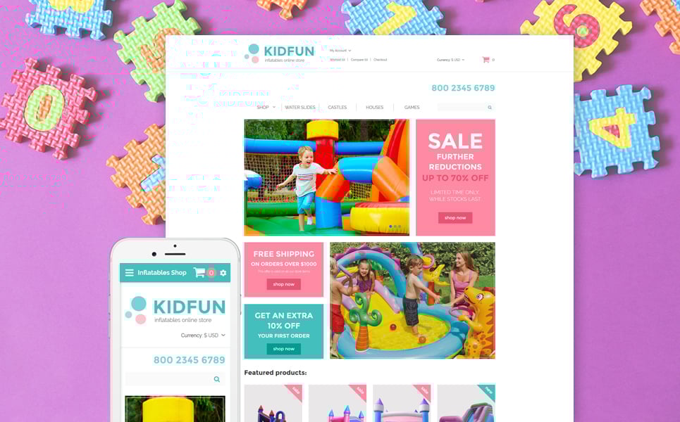 KidFun - превосходно подходит для сайтов Детские товары. OpenCart интернет-магазин - Kids Toys & Games Store OpenCart Template.