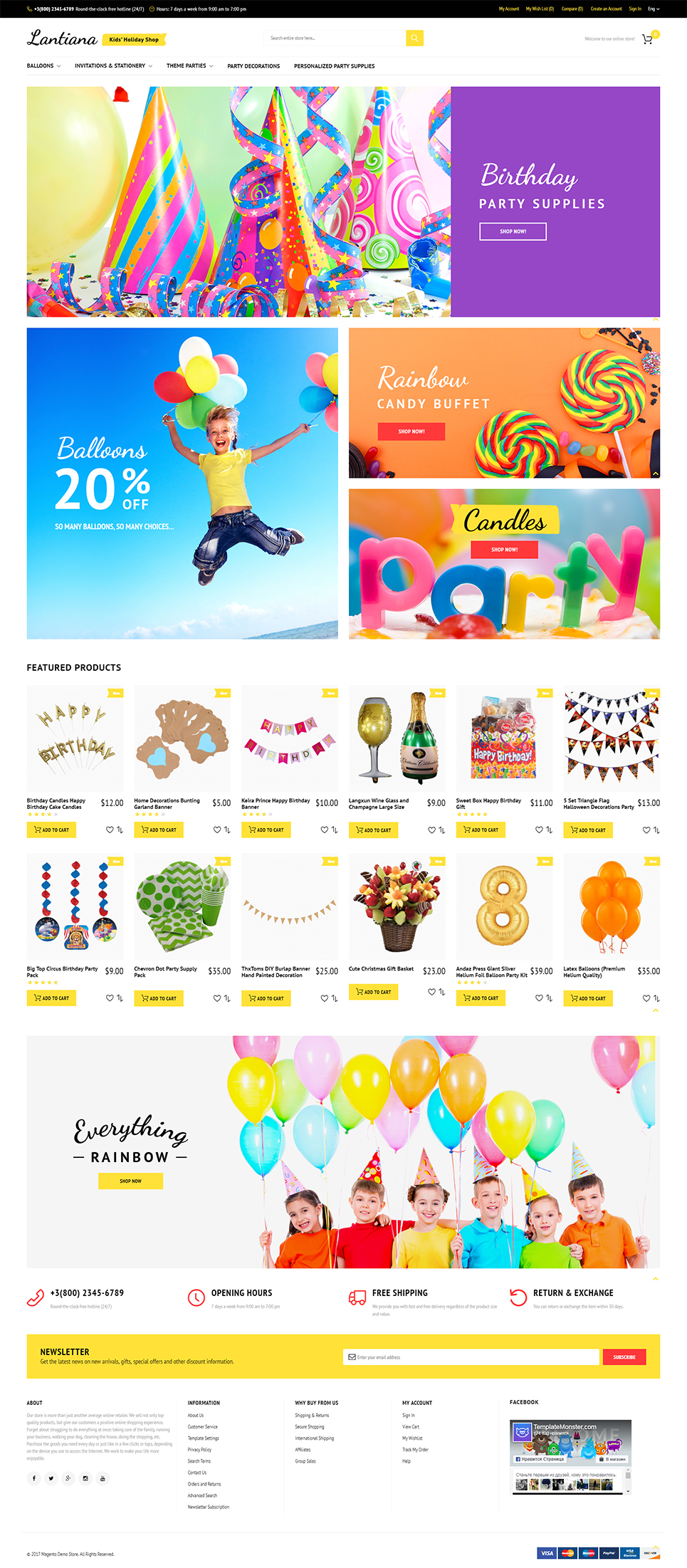 Magento отличный шаблон - Lantiana - Party Supplies Magento Theme, хорошо подойдет для сайтов в категории Хеллоуин.