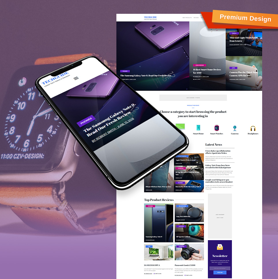 News Portal - подойдет для сайтов в области Новостной портал. Moto CMS 3 минималистичный шаблон - Latest Tech News & Reviews Moto CMS 3 Template.