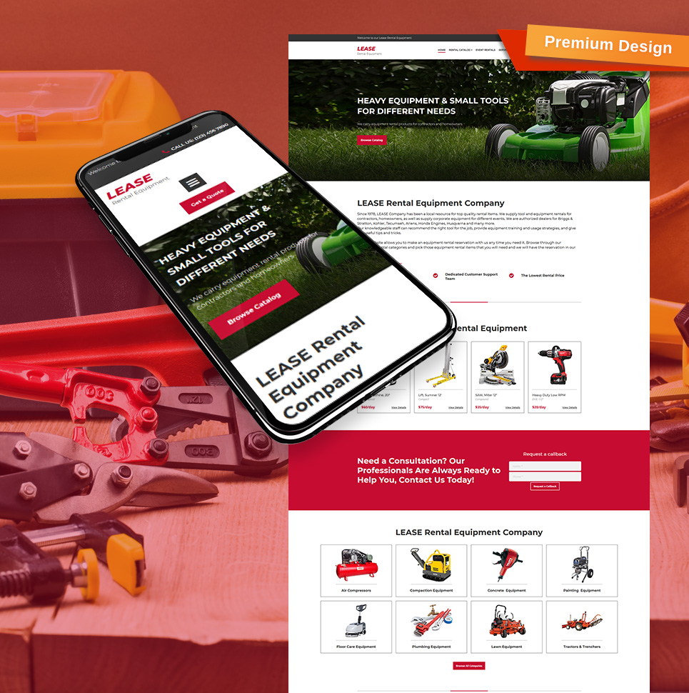Lease - идеально подойдет для сайтов в области Инструменты и оборудование. Moto CMS 3 шикарный шаблон - Tool Rentals Moto CMS 3 Template.