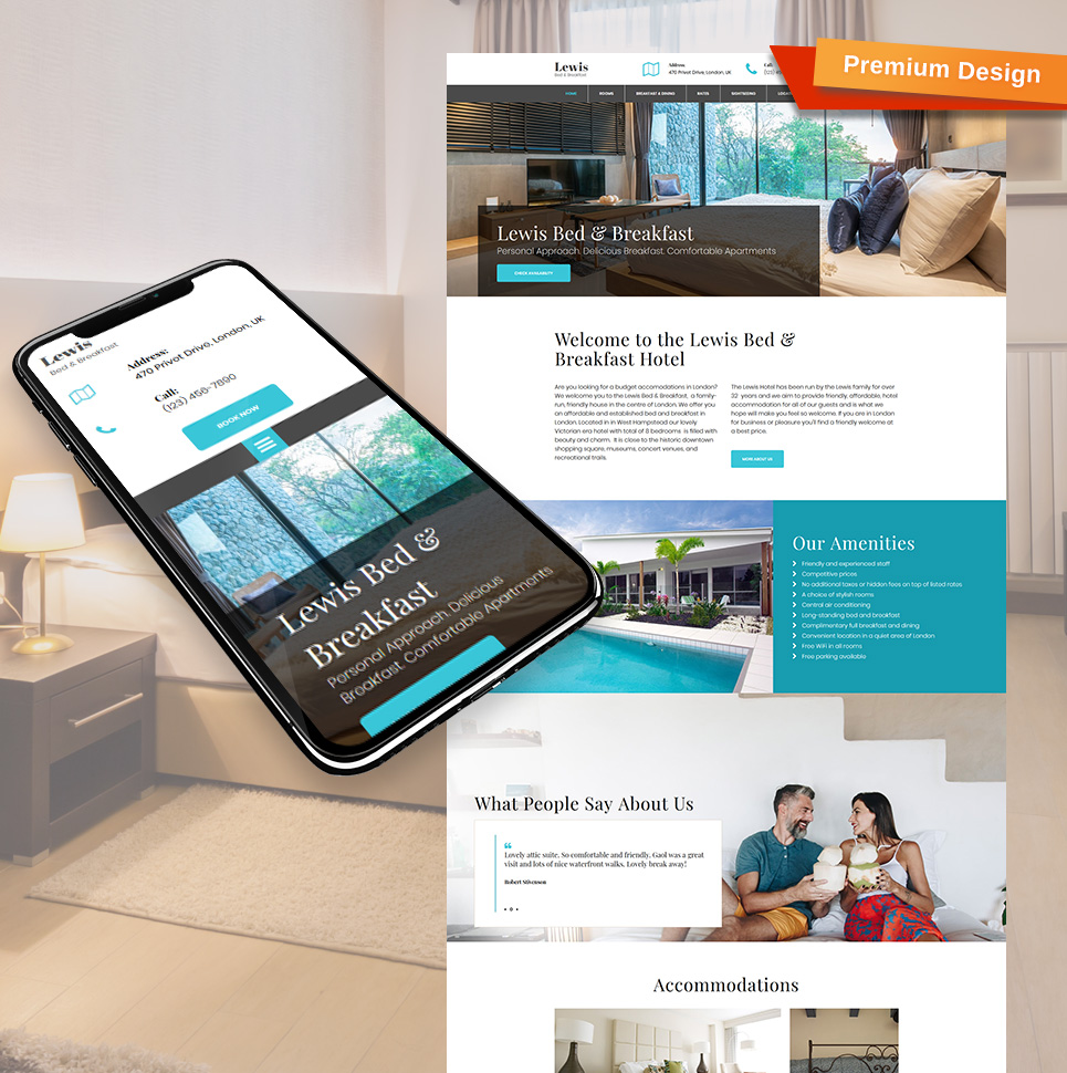 Moto CMS 3 отличный шаблон - Lewis - Bed and Breakfast Moto CMS 3 Template, специально для сайтов в категории Отели.