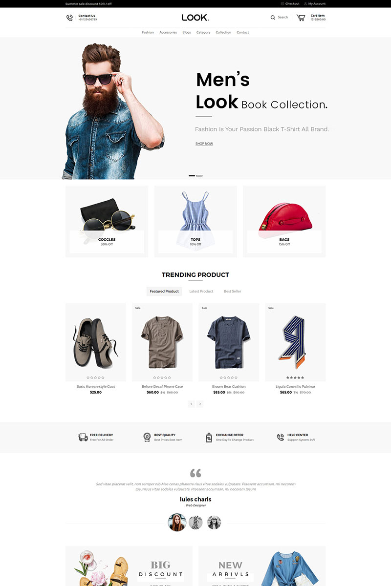 Jeans - подходит для сайтов на тему Магазин джинсов. Shopify шаблон интернет-магазина - Look Fashion Shopify Theme.