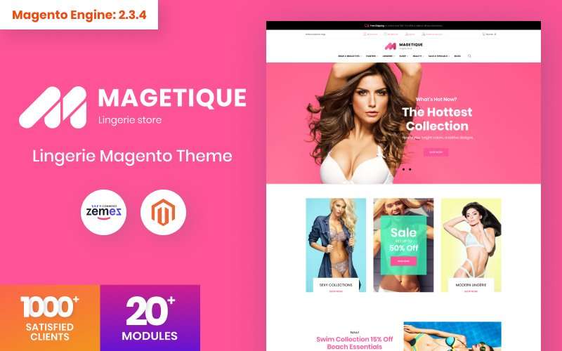 Magento функциональный шаблон - Magetique - Lingerie Magento Theme, превосходно подходит для сайтов в категории Магазин белья.