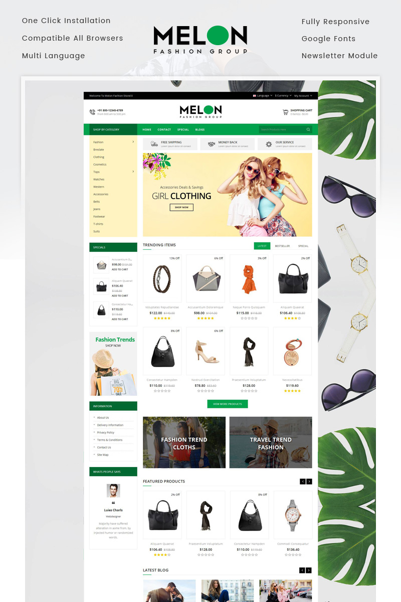 Шаблон модного магазина opencart - Melon - OpenCart шаблон для интернет-магазина
