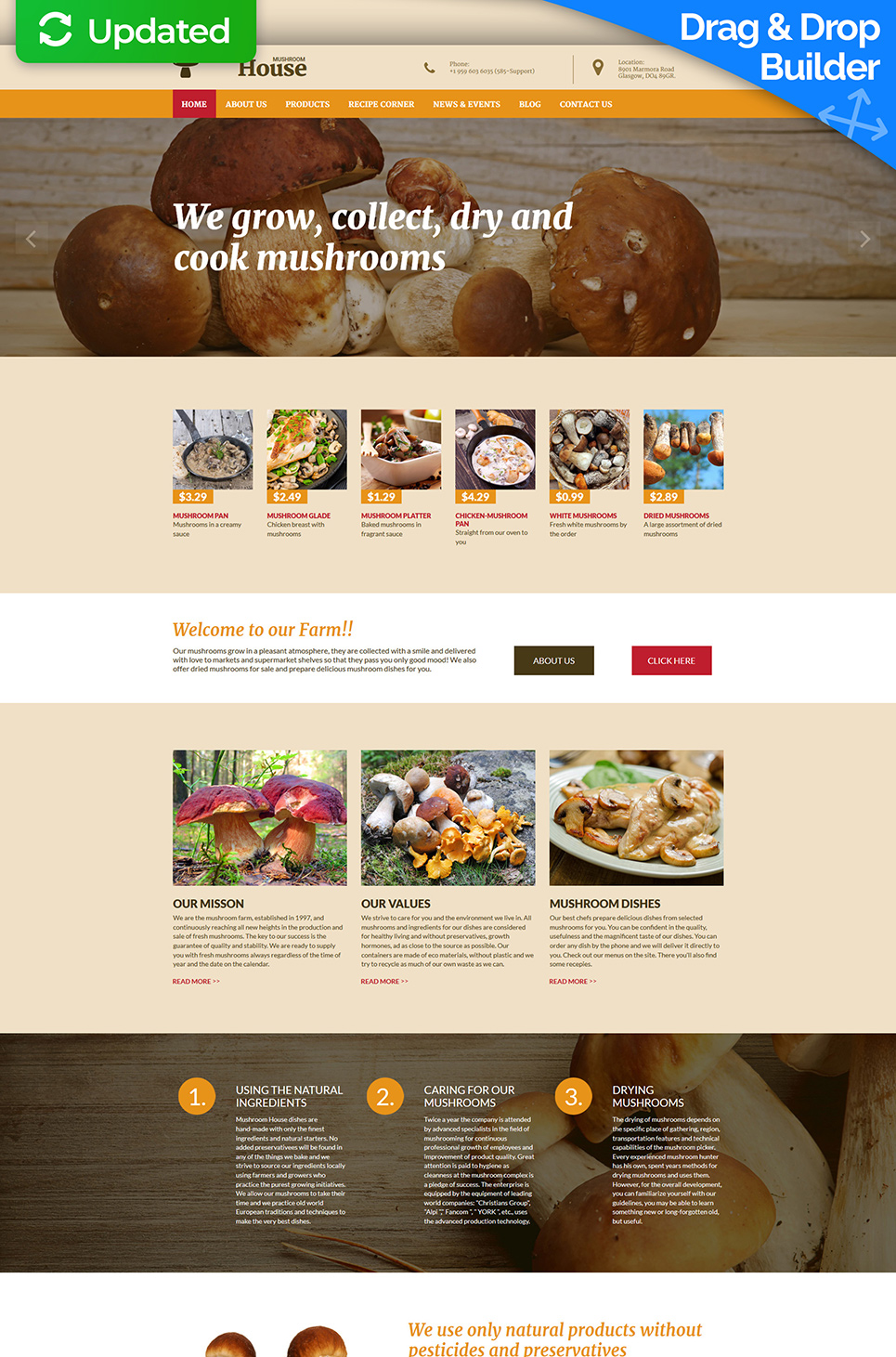 Farm - подойдет для сайтов в категории Фермы. Moto CMS 3 мультишаблон - Mushroom Farm Moto CMS 3 Template.