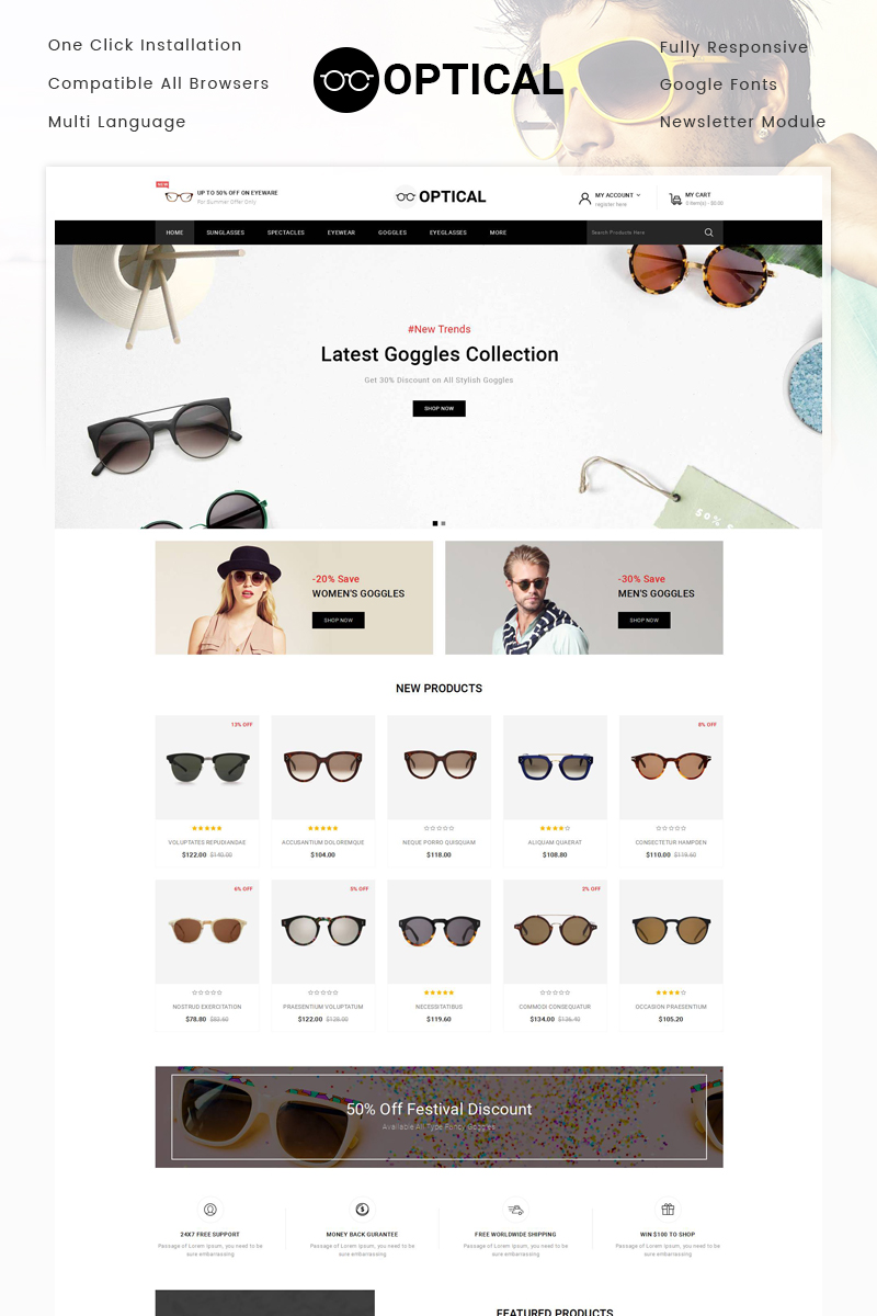 Очки для глаз магазин opencart шаблон - Optical - OpenCart шаблон для сайта интернет-магазина