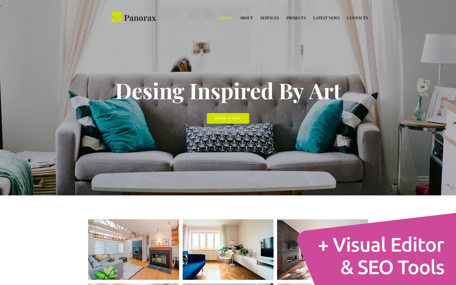 Moto CMS 3 эффектный шаблон - Panorax - Interior Design Moto CMS 3 Template, идеально подойдет для сайтов Дизайн интерьеров.