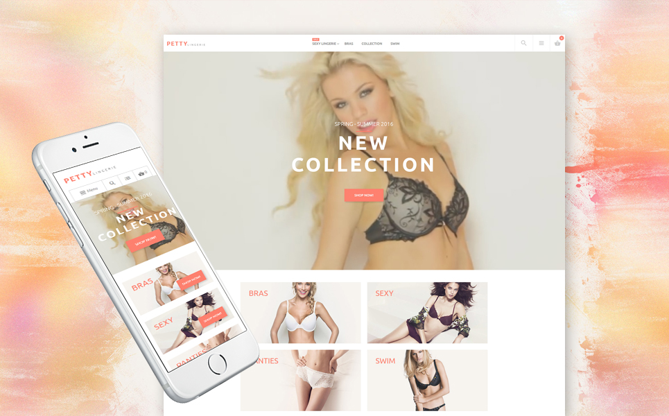 Petty - превосходно подходит для сайтов в области Магазин белья. Magento шаблон - Lingerie Store Magento Theme.