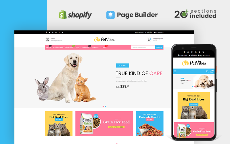 Зоомагазин shopify тема - Petvibes - Shopify шаблон для интернет-магазина