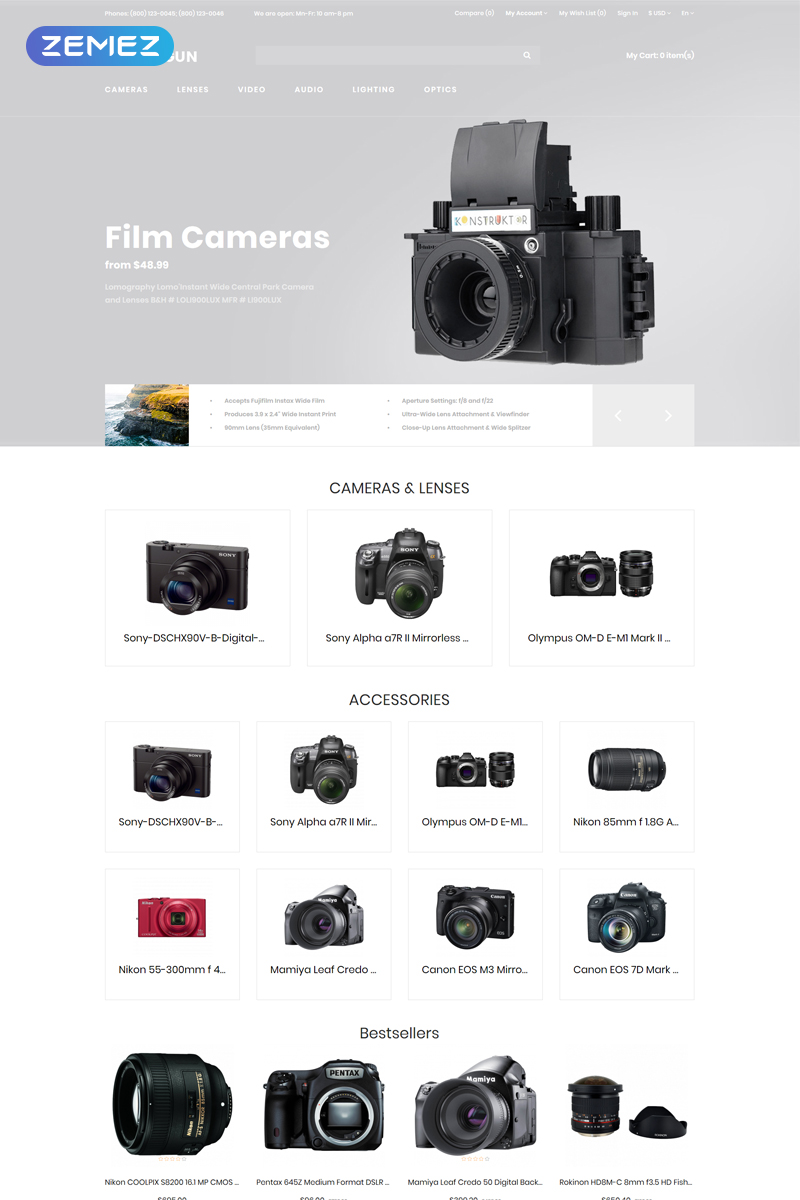 OpenCart интернет-магазин - Photo Gun - D?ommerce Modern OpenCart Template, отлично подходит для сайтов на тему Фотограф.