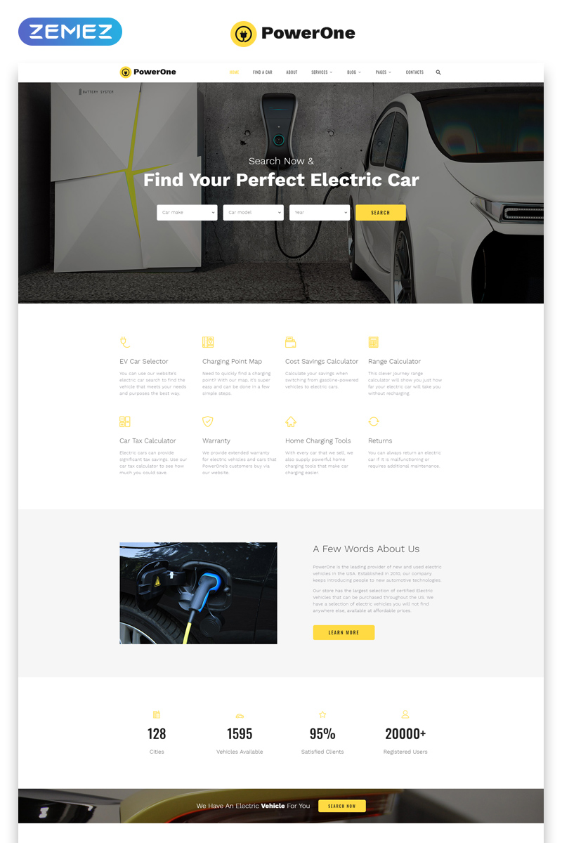 PowerOne - идеально подходит для сайтов в категории Автодилер. HTML5 популярный шаблон - Electric Cars Classic Multipage HTML5 Website Template.