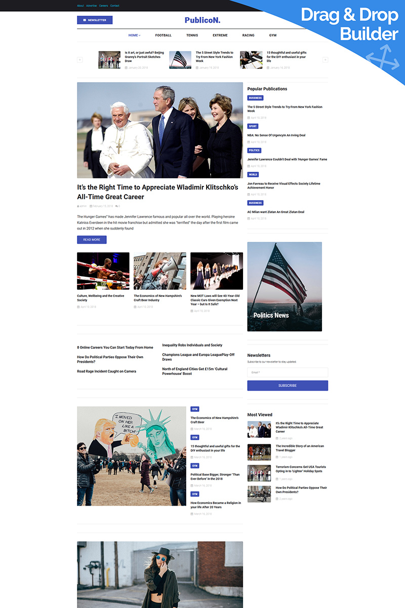 Moto CMS 3 шаблон сайта - Publicon - Newspaper Moto CMS 3 Template, подойдет для сайтов Новостной портал.