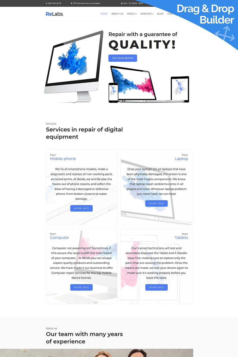 ReLabs - идеально подходит для сайтов в области Ремонт компьютеров. Moto CMS 3 мультишаблон - Computer Repair Moto CMS 3 Template.