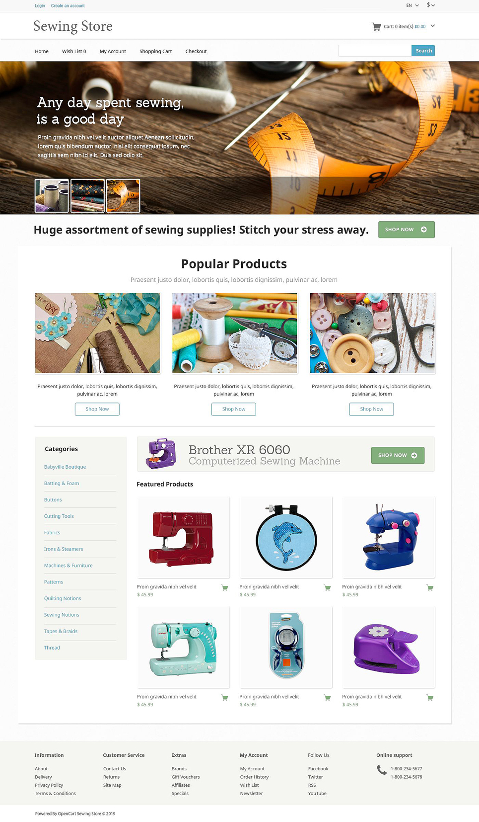 Crafts - хорошо подходит для сайтов в области Рукоделие. OpenCart интернет-магазин для сайта - Sewing Knitting OpenCart Template.