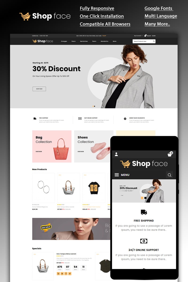 Шаблон модного магазина opencart - Shopface - OpenCart шаблон для сайта интернет-магазина