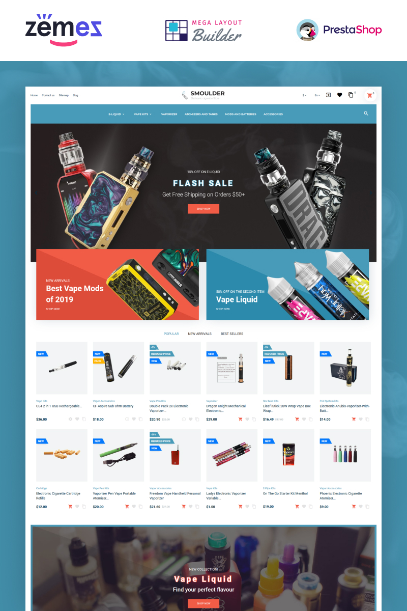 PrestaShop шаблон для сайта интернет-магазина - Smoulder - cigarette Website Design PrestaShop Theme, подходит для сайтов в области Табачные изделия.
