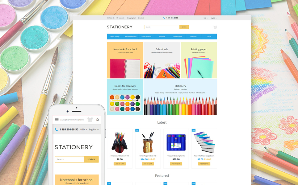 Stationery - превосходно подойдет для сайтов в сфере Канцелярские товары. OpenCart шаблон для интернет-магазина - Stationery OpenCart Template.