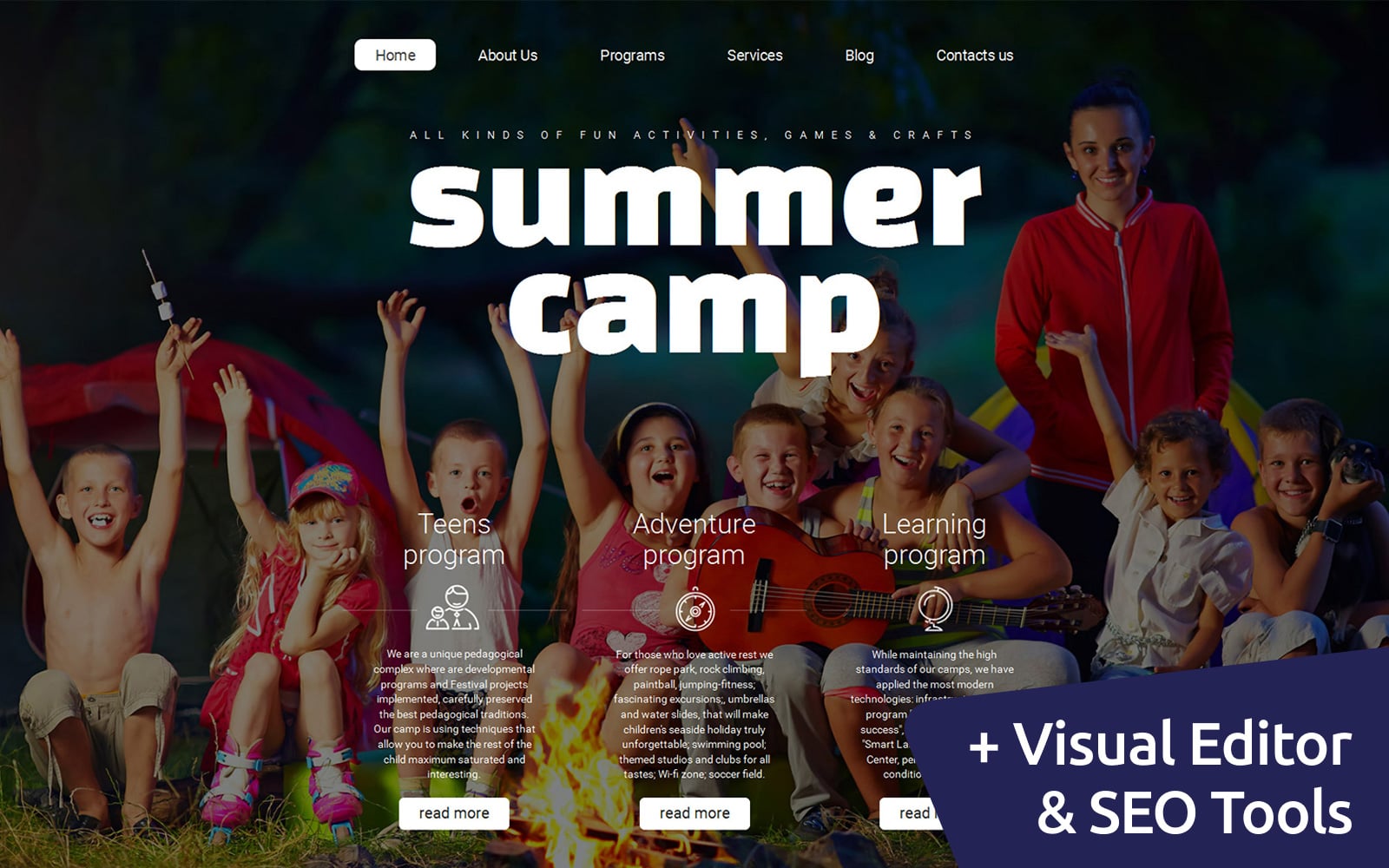 Summer Camp - превосходно подойдет для сайтов Летний лагерь. Moto CMS 3 шаблон для сайта - Summer Camp Moto CMS 3 Template.