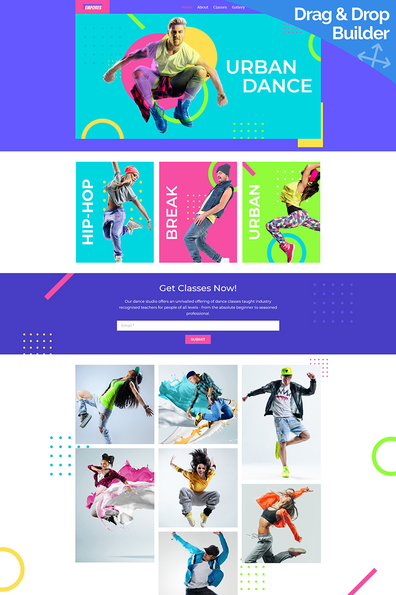 Tempores - хорошо подходит для сайтов в области Спорт. Moto CMS 3 адаптивный шаблон - Street Dance Moto CMS 3 Template.