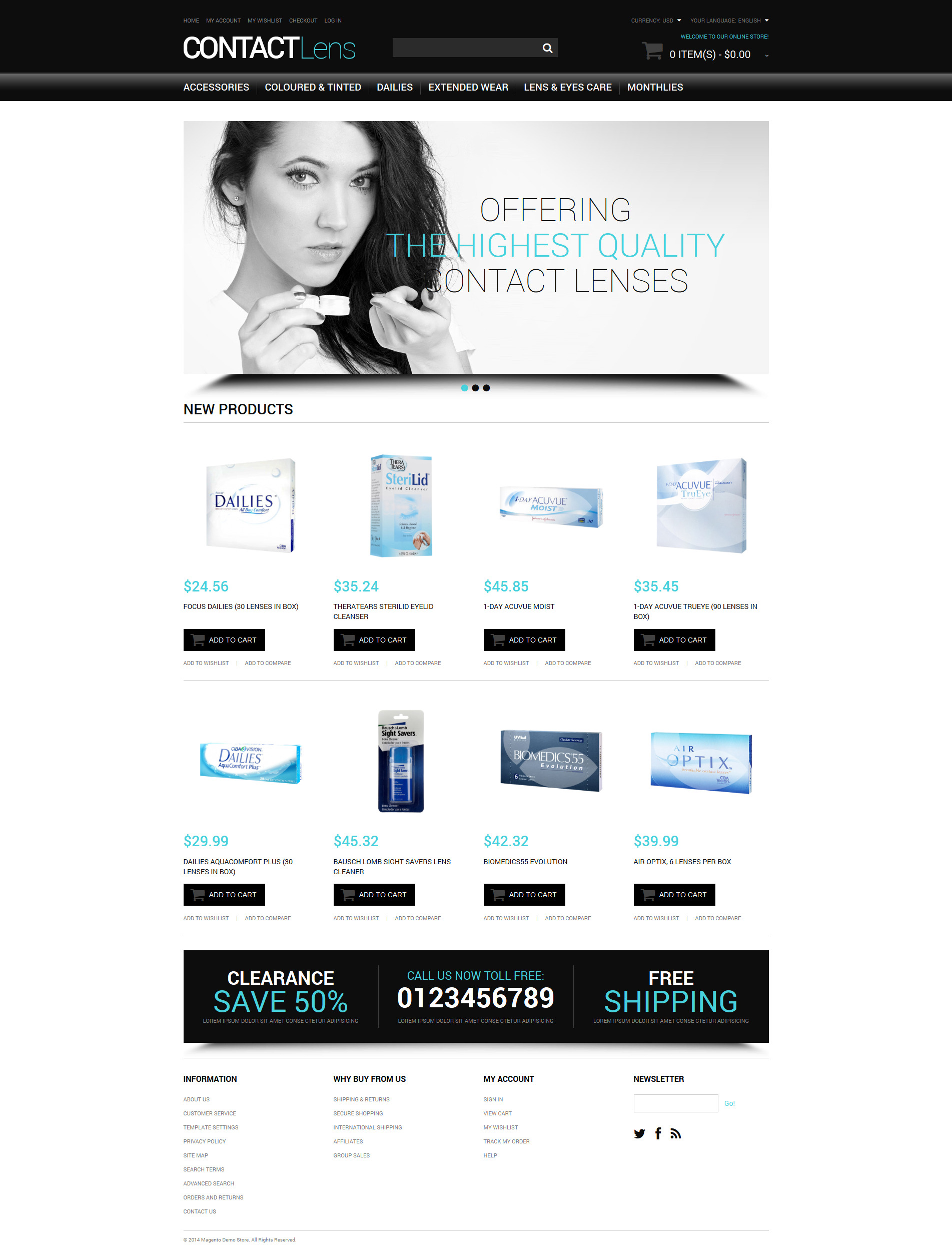 Зрительные контактные линзы magento theme - Optometrist's - Magento адаптивный шаблон