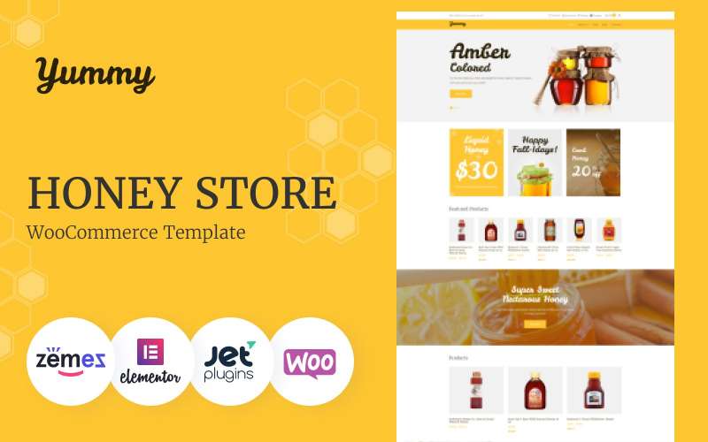 WooCommerce шаблон магазина для сайта WordPress - Yummy - Honey Store WooCommerce Theme, превосходно подходит для сайтов на тему Мёд.